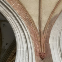 - Profil des nervures peintes en rouge d'une voûte de l'église de Notre-Dame de Kernascléden