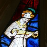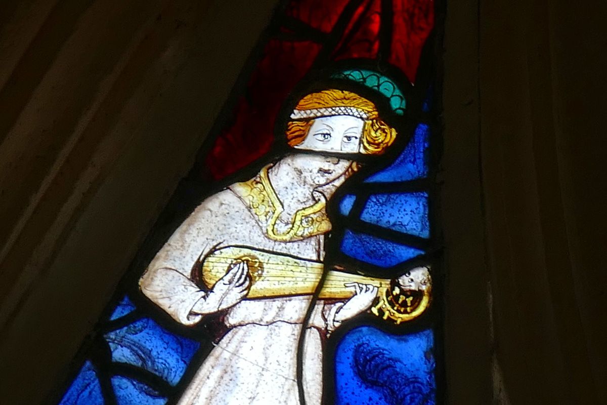 Anges du registre supérieur du registre supérieur de la maîtresse vitre de l'église Saint-Jacques de Merléac.