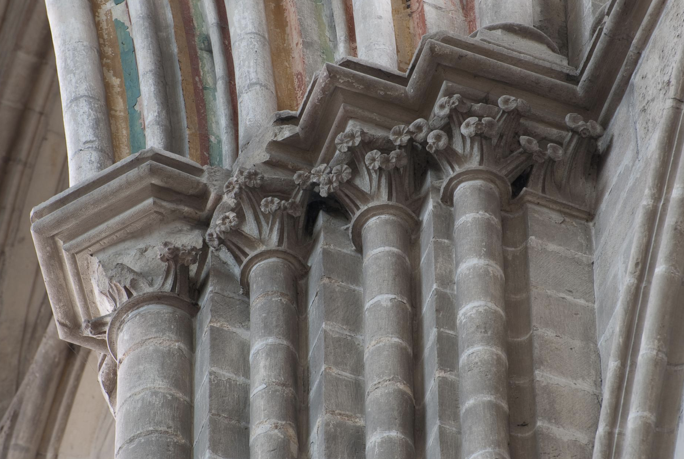 - Retombées arcades sur piliers et nervures peintes, cathédrale Saint-Étienne de Nantes
