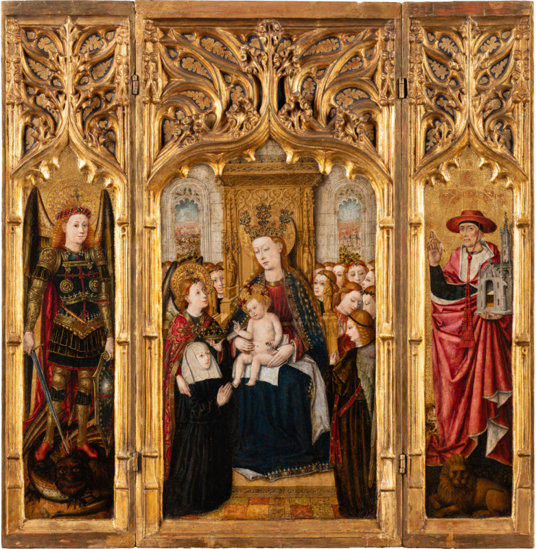 Vierge à l'enfant trônant, XVe siècle, tryptique, Jacomart et Juan Rexach