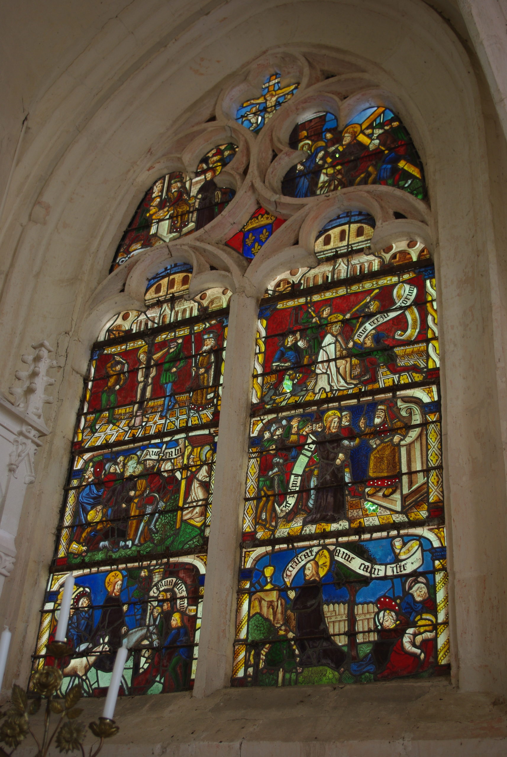 Vue du vitrail de la Passion de l'église Saint-Pierre et Saint-Paul de Trouans