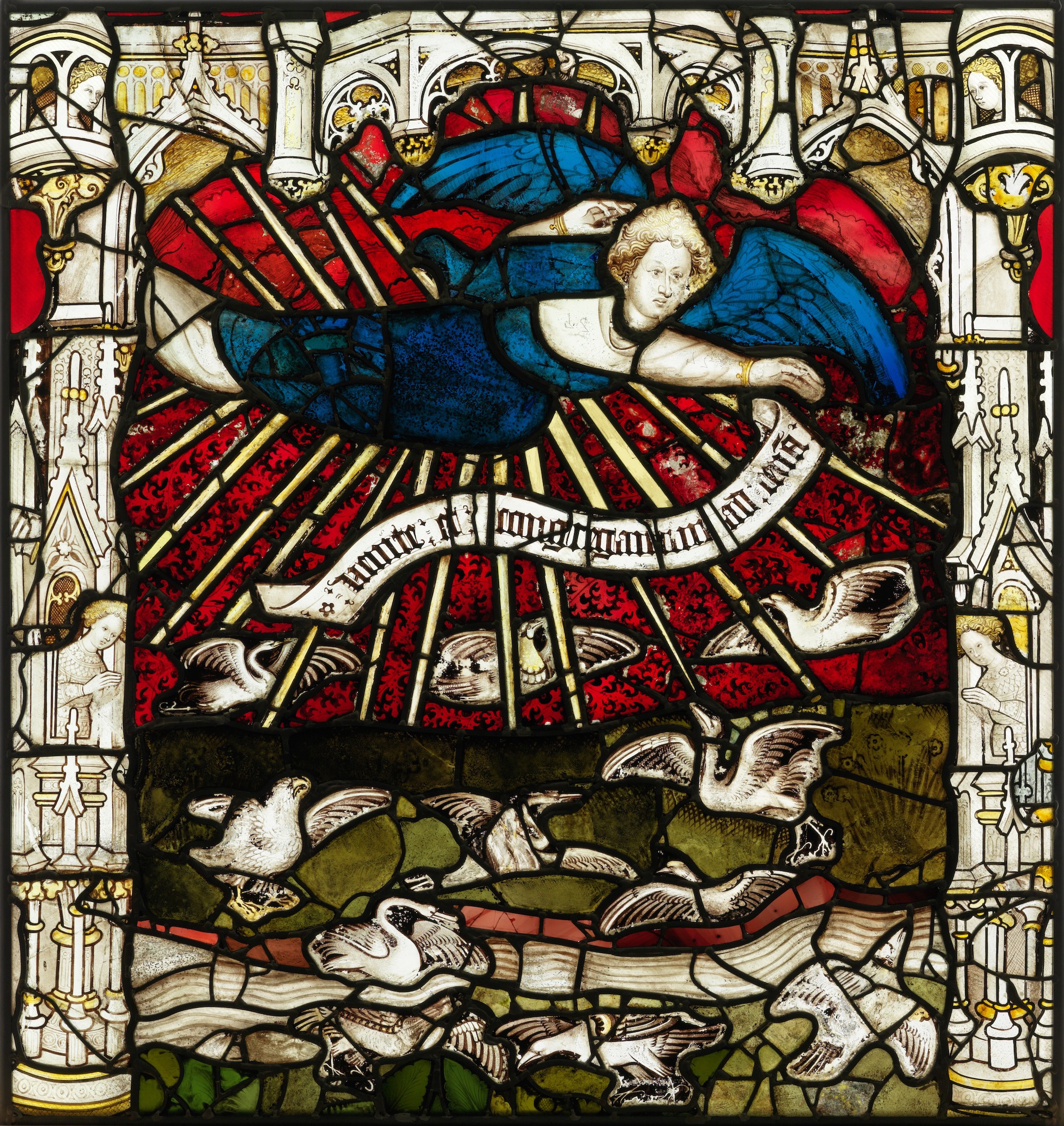 Exhortation d'un ange aux oiseaux à s'envoler vers le paradis, grande baie est de la cathédrale de York