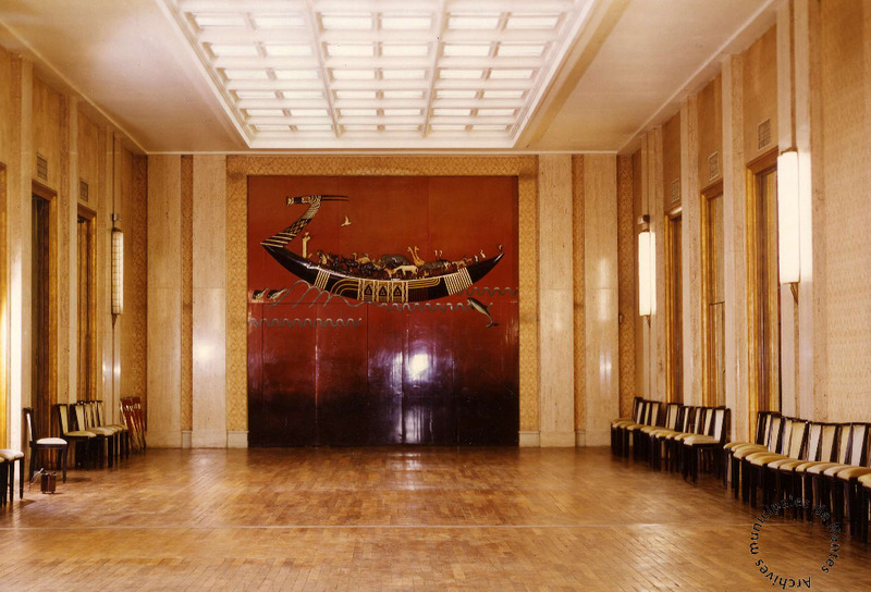 - vue de la salle de l'arche présentant la laque de pierre pierre dunand