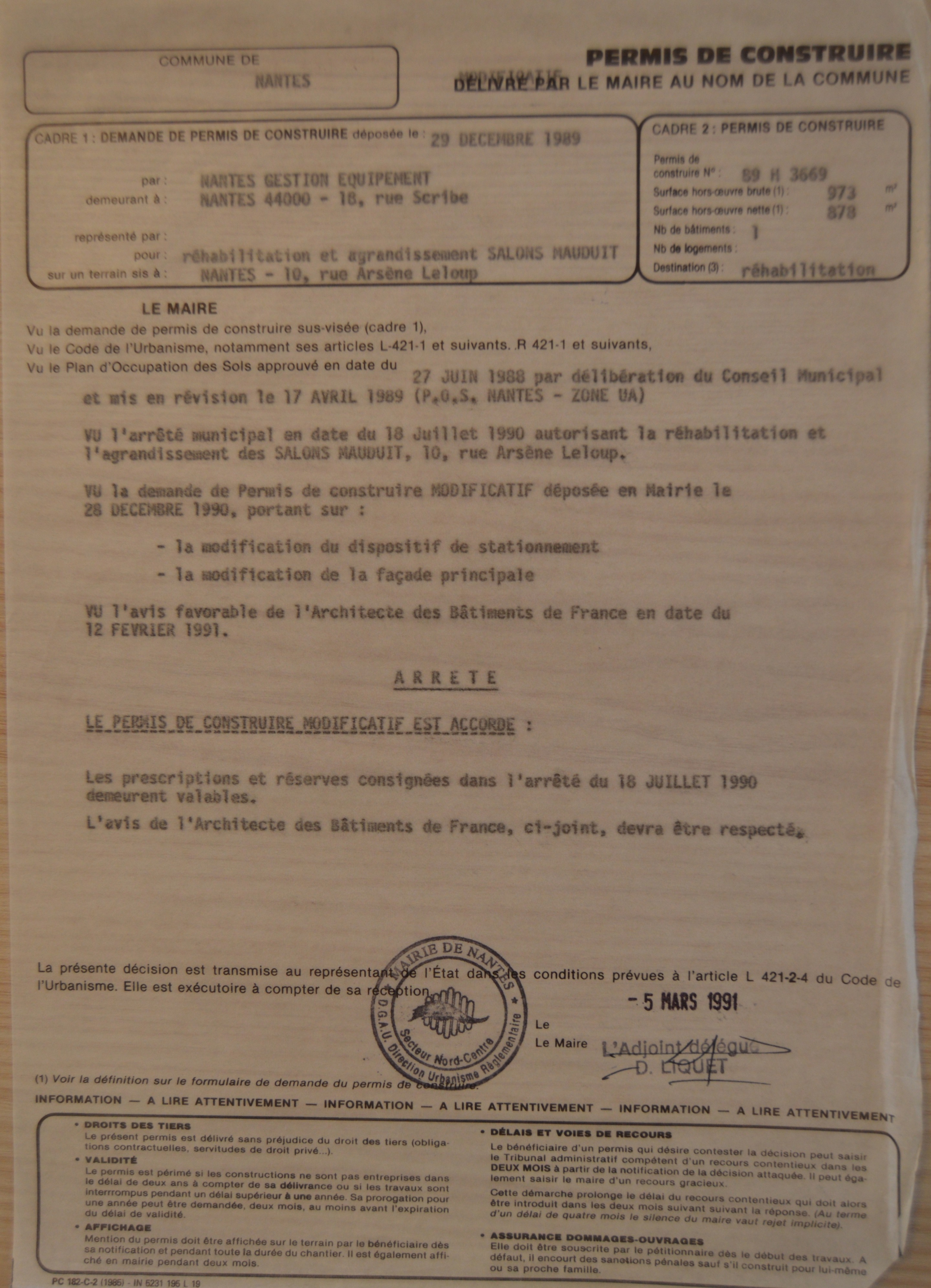 - permis de construire 1989