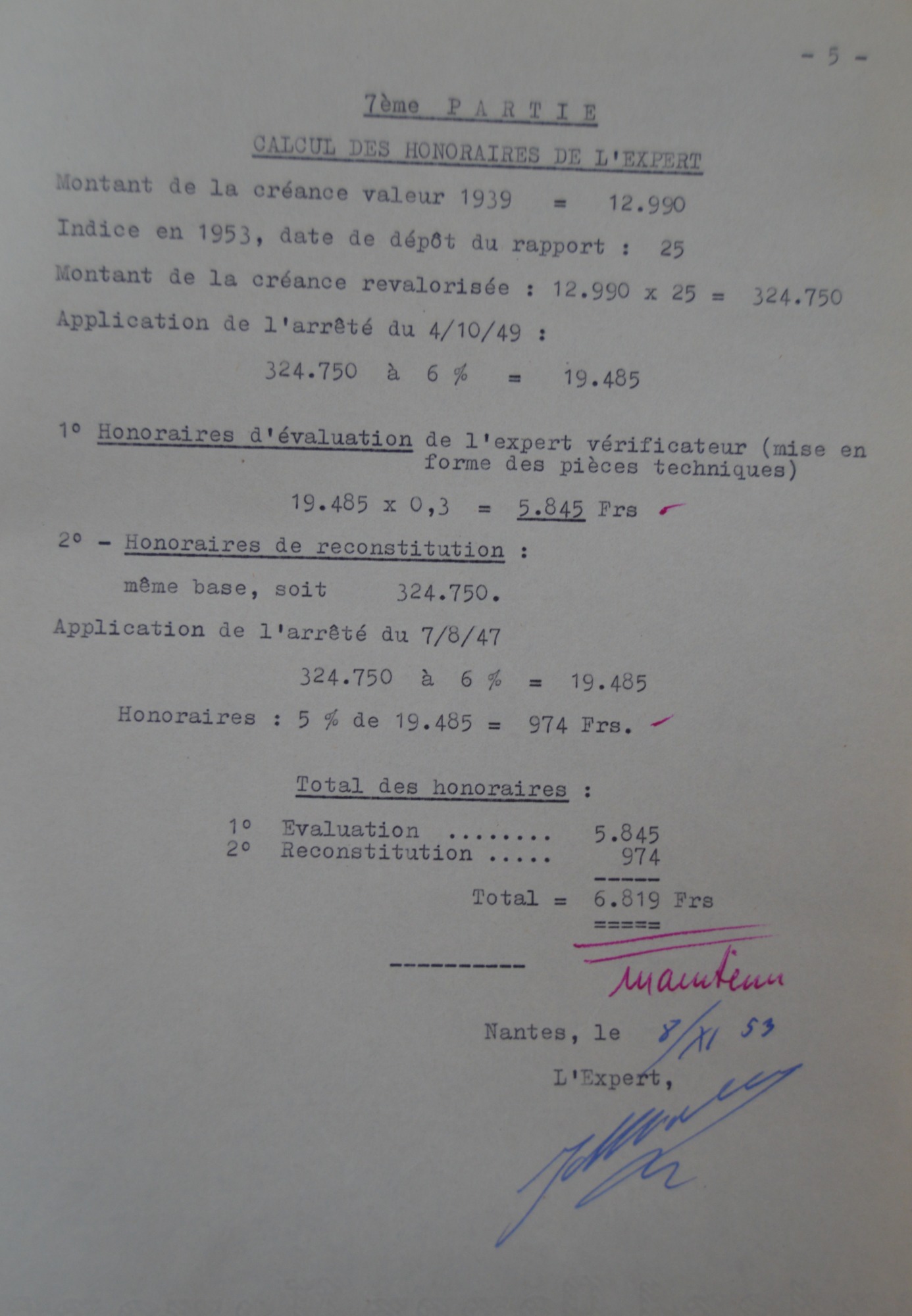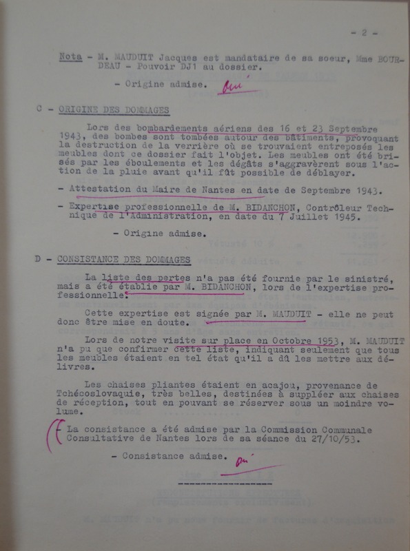 - document expliquant l'origine et la consistance des dommages de guerre