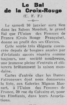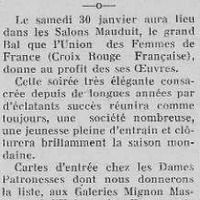 - annonce dans la presse d'un bal de la croix-rouge, se déroulant aux salons mauduit